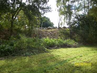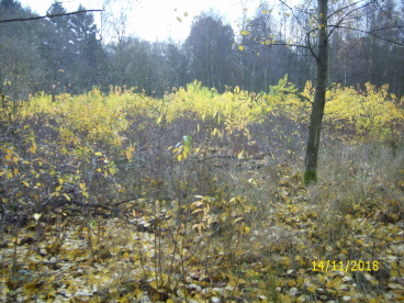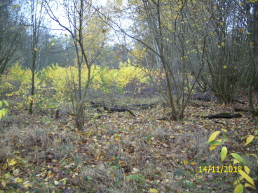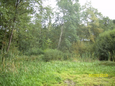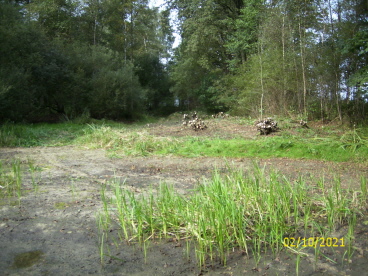 | Da die Wasserstelle trocken war, haben wir am 01.10.16 an der Uferkante einige Öhrchenweiden zurück geschnitten sowie 5 kleine Birken und eine Pappel gefällt. Somit wird der Lichteinfall weiter optimiert und der Laubeintrag reduziert. Im Bild unten rechts sind die schnittstellen an den Weiden zu erkennen, den Faulbaum vorne rechts im gleichen Bild wollen wir erhalten. Die zwischen den Öhrchenweiden stehenden Haselnusssträucher und Ebereschen können sich nun besser entwickeln. |