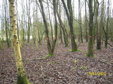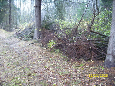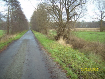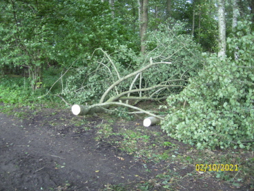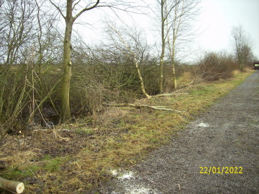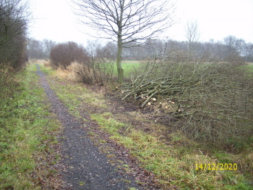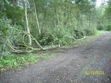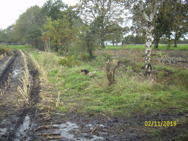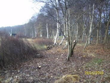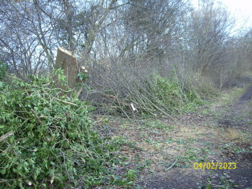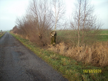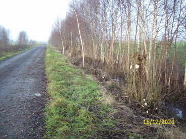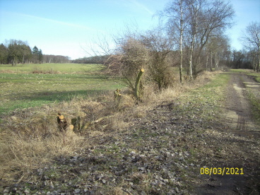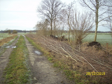 Im Wegeseitenraum vom Weg 5, kurz vor der T - Kreuzung mit den Wegen 8 & 15, haben wir 7 kleine Birken gefällt, 6 Kopfweiden zurückgeschnitten und in zwei Bereichen von ca. 20m Länge alle Öhrchenweiden auf den Stock gesetzt. |