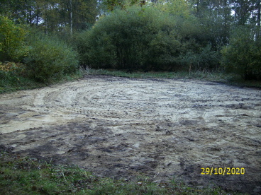 Die Wasserstelle in Webers Bad war ebenfalls komplett zugewachsen. Nach Rücksprache mit der Naturschutzbehörde vom Landkreis Cuxhaven, haben wir auch hier mit einem 5t Bagger die Vegetation ca. 10cm tief abgezogen. |