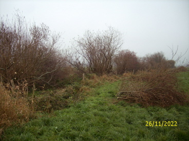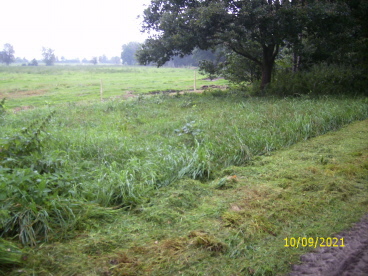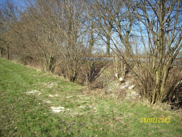 An der Sellstedter Grove, Höhe Regenwasserrückhaltebecken "Im Eichengrund", waren die Gehölze einer Wallhecke mittlerweile so breit gewachsen, dass eine Grabenräumung ebenfalls nicht möglich war. |
