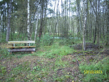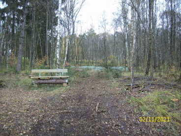 | Im südöstlichen Bereich der Wasserstelle in "Webers Bad" wurden 3 große Pappeln und auf der "Insel" 5 kleine Birken gefällt, einige Öhrchenweiden haben wir zurückgeschnitten. Die alte, zerstörte Sitzbank an der Nordseite der Wasserstelle haben wir durch einen Eichenstamm ersetzt. |
