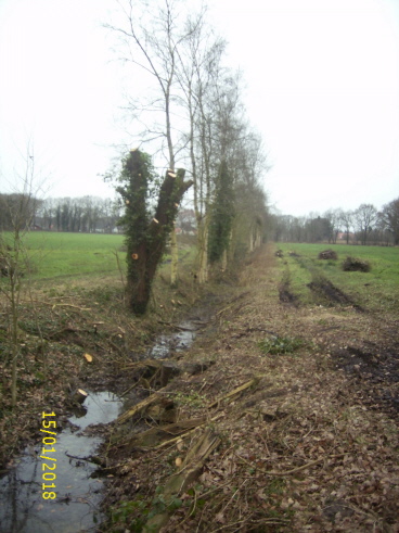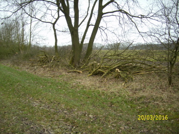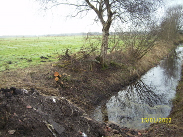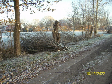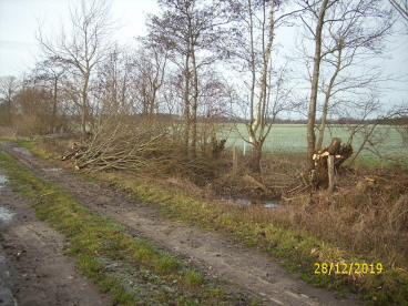 Im westlichen Gehölzstreifen vom Graben Richtung Geeste, Nordende Weg 5, waren u.a. viele Weiden auseinandergebrochen, sodass eine für diesen Winter geplante Grabenräumung nicht möglich war. |