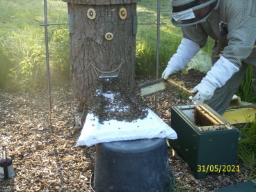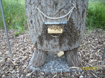 | Hier ein Video vom "bergen" des Bienenschwarms: |