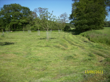Am 25.09.21 haben wir unsere Streuobstwiese zum zweiten mal in diesem Jahr gemäht. Wie sich später herausstellen sollte, ein schlechter Termin. Einige Tage später war es wegen des Regenwetters nicht mehr möglich zu pressen, sodass wir das Mähgut auf Kipper geladen und auf einen Misthaufen gefahren haben. |
