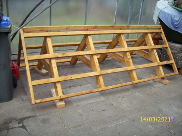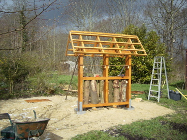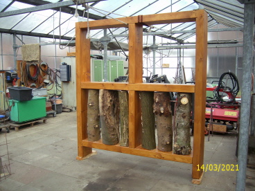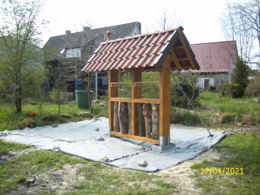 Unsere Klotzbeute Nachdem die Klotzbeute der Firma Holz Bohse geliefert wurde, ist eine Einlauframpe und ein Gestell zur Sturmsicherung gefertigt worden. Aufgestellt haben wir sie Ende Mai und am 31.05. ist der Bienenschwarm eingezogen. |