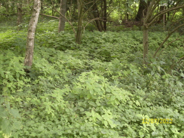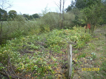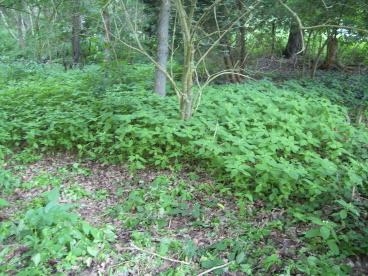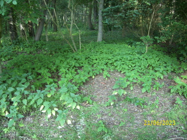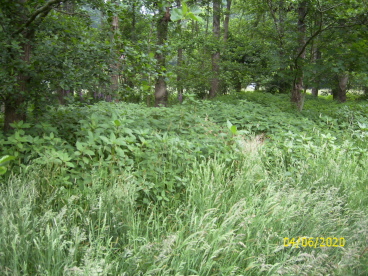 Der Japanische Staudenknöterich auf dem ehemaligen Osterfeuerbrennplatz in Altluneberg wurde ebenfalls wieder gemäht. Es ist eindeutig zu erkennen, dass der jährliche Aufwuchs durch mehrfaches mähen reduziert wird. |