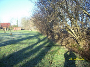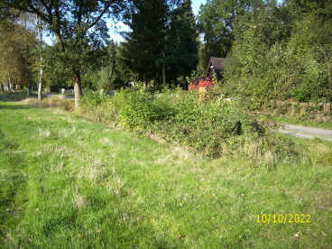 Im Weg 54 wurden eine große Amerikanische Eiche sowie ca. 50% der kleinen Pappeln gefällt. Des Weiteren haben wir einen Teil der Weißdornsträucher und eine Salweide auf etwa 1,5m eingekürzt. |