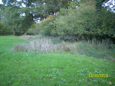 Über die Jahre ist die Wasserstelle auf unserer Streuobstwiese komplett zugewachsen. Mit einem 5t Bagger haben wir nun die Vegetation ca. 10cm tief abgezogen. |