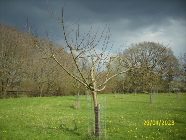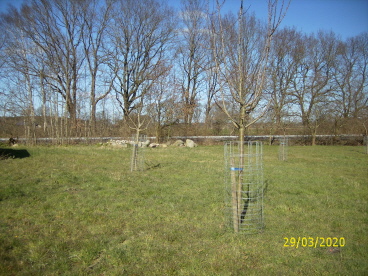 Wir haben einen Pflegeschnitt an den Obstbäumen durchgeführt. 4 Bäume wurden bereits im Januar, als Praxisteil des Obstbauschnittkurses der NoLa geschnitten, die restlichen von uns im März. Anschließend wurde der Wildschutz erneuert. |