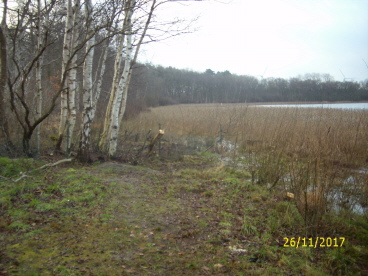 Im Uferbereich von Webers Bad haben wir Öhrchenweiden zurück geschnitten und einige kleine Birken gefällt. Im Gehölzbestand zum Weg 26 wurden einige kleine Pappeln gefällt, um Weißdornsträucher und Ebereschen freizustellen. |
