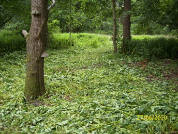 Zwischen dem 12. und 15. 7. haben wir im NSG westlich hinter dem Campingplatz wieder die Flächen, auf denen das Sibirische und Drüsige Springkraut wachsen, gemäht bzw. Restvorkommen rausgezogen. |
