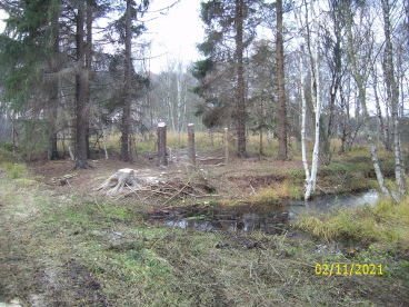 Auf der Fläche der Naturschutzstiftung am Weg 55 haben wir im Randbereich der Wasserstellen eine Vielzahl von Birken und einige Tannen gefällt. Damit wird der Lichteinfall verbessert und die dortige noch gering vorkommende Vegetation wie z.B. Sumpfcalla kann sich neu entwickeln. |