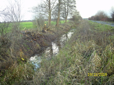 In der südlichen Böschung vom Graben 369 (Nebengraben zur Geeste) haben wir einige Öhrchenweiden bodennah zurückgeschnitten, eine Große Pappel in ca. 4m geköpft sowie eine Birke gefällt und eine Vielzahl von kleinen Pappeln entfernt. |