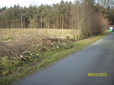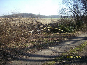 Im Seitenraum vom Weg 51 haben wir eine Salweide auf etwa 1,5m zurück geschnitten und einige Pappeln gefällt. |