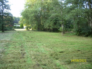 Hinter dem Campingplatz wurde die "Springkrautfläche" erneut gemulcht, ebenso die Bereiche, auf denen Traubenkirschen wachsen. Zwischen den Bäumen und Sträuchern wurde mit Motorsensen gemäht. |