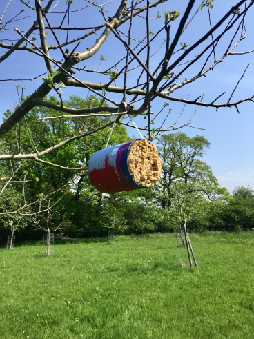 Im Frühjahr wurden im Wehdeler Hort, mit den Kindern dort, kleine Insektenhotels aus Konservendosen und Reet gebastelt. Einige von ihnen hängen an den Obstbäumen auf unserer Streuobstwiese. |