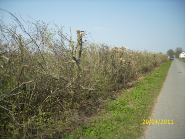 Im linken Bild sehen Sie eine maschinell gepflegte Feldhecke. Aus unserer Sicht sind kantige Hecken eher was für den heimischen Garten und haben in der weiten Landschaft nichts verloren. Sicherlich mag es für diese Ausführung Gründe geben ( Lichtraumprofil, dichter Bewuchs.....). |